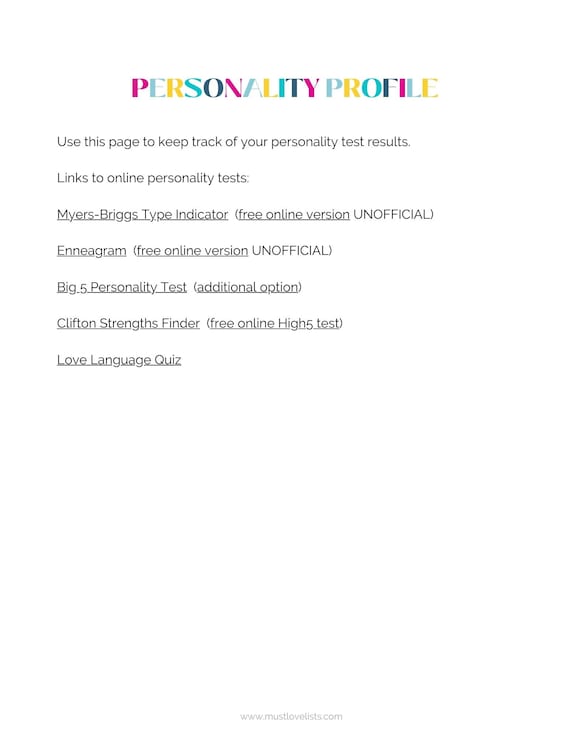 Personality Test Record Personality Test Tracker Etsy De